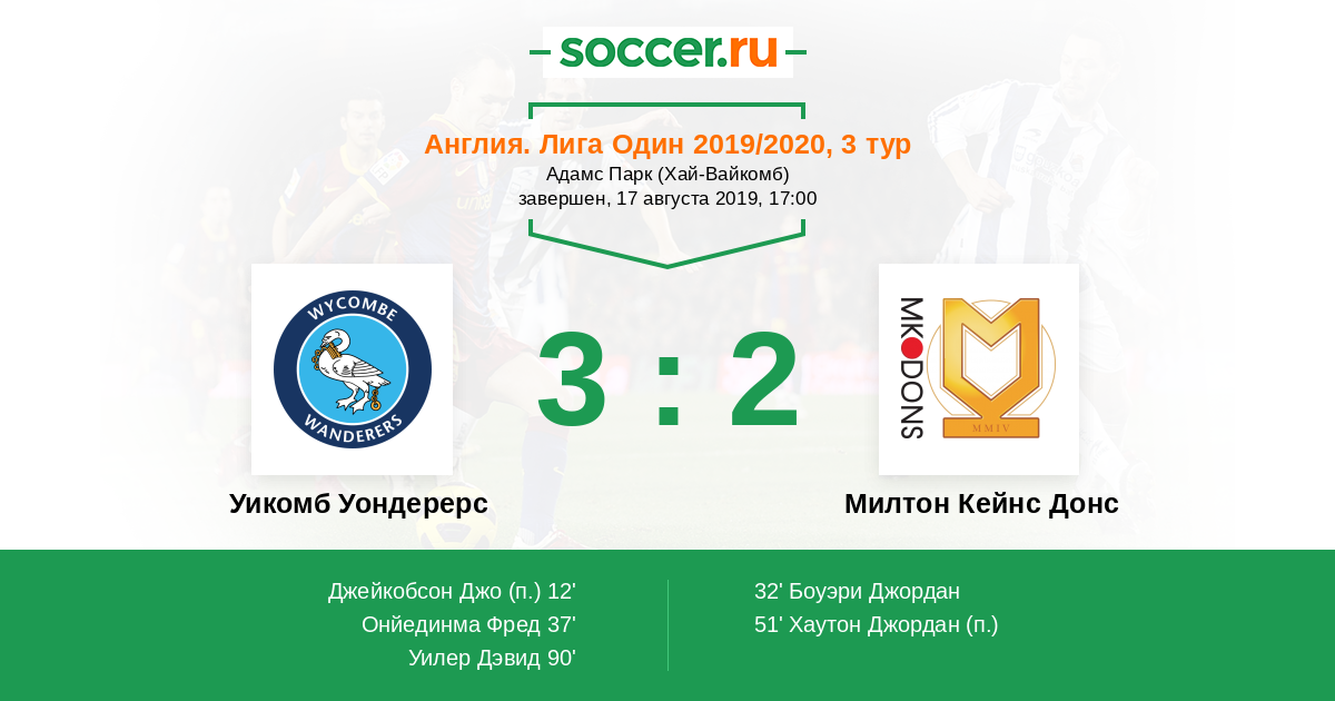 Протокол матча Уикомб Уондерерс против Милтон Кейнс Донс