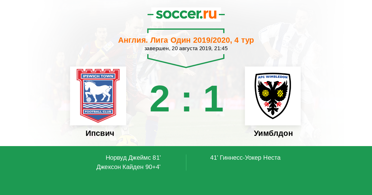 Протокол матча Ипсвич против Уимблдон