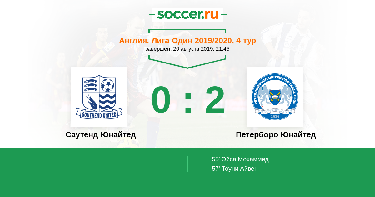 Протокол матча Саутенд Юнайтед против Петерборо Юнайтед