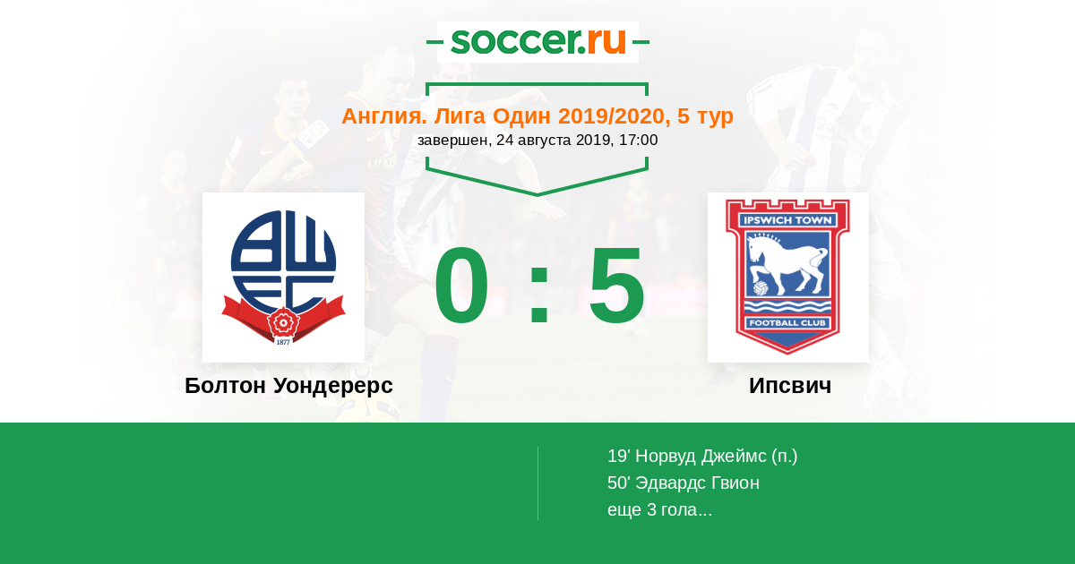 Протокол матча Болтон Уондерерс против Ипсвич