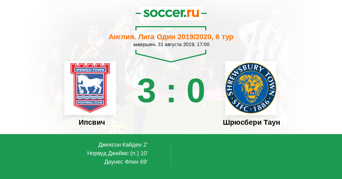 Протокол матча Ипсвич против Шрюсбери Таун