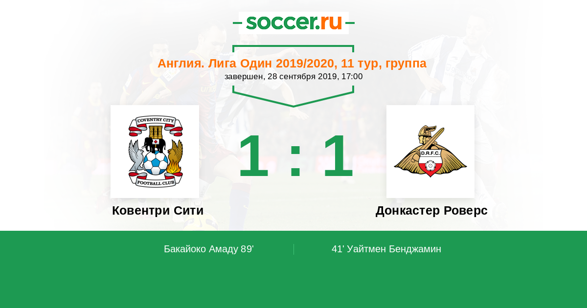 Протокол матча Ковентри Сити против Донкастер Роверс