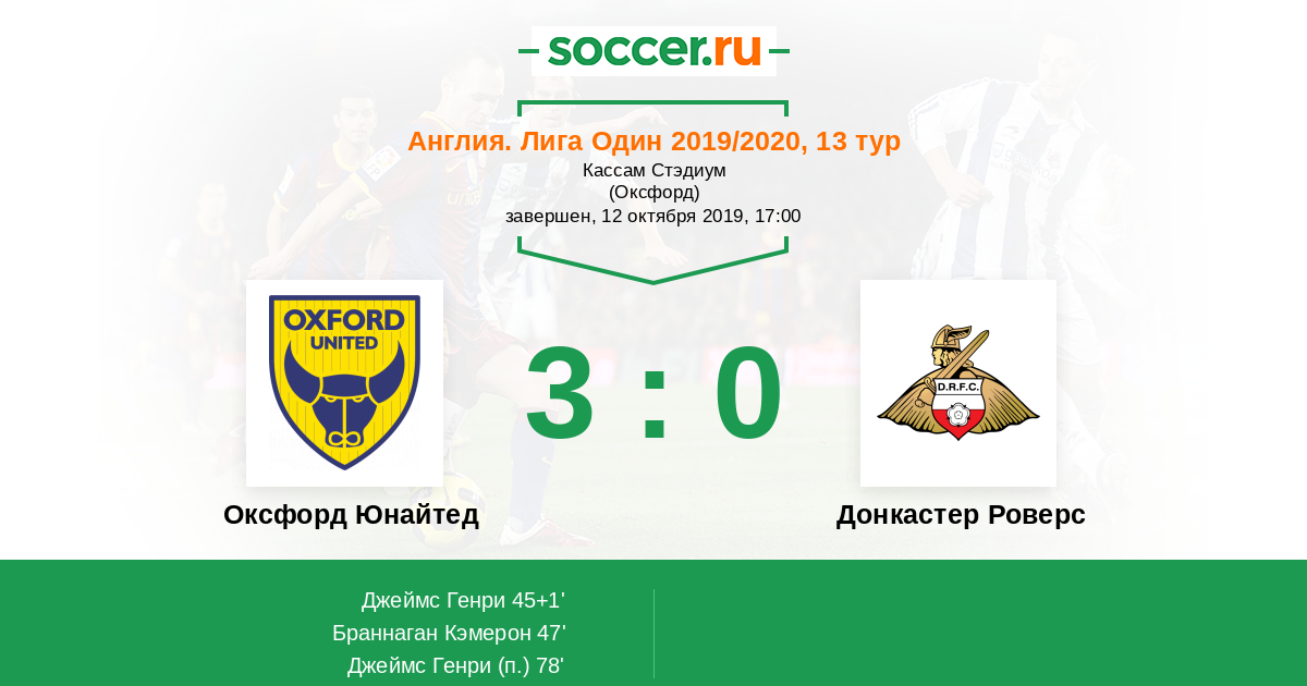 Протокол матча Оксфорд Юнайтед против Донкастер Роверс