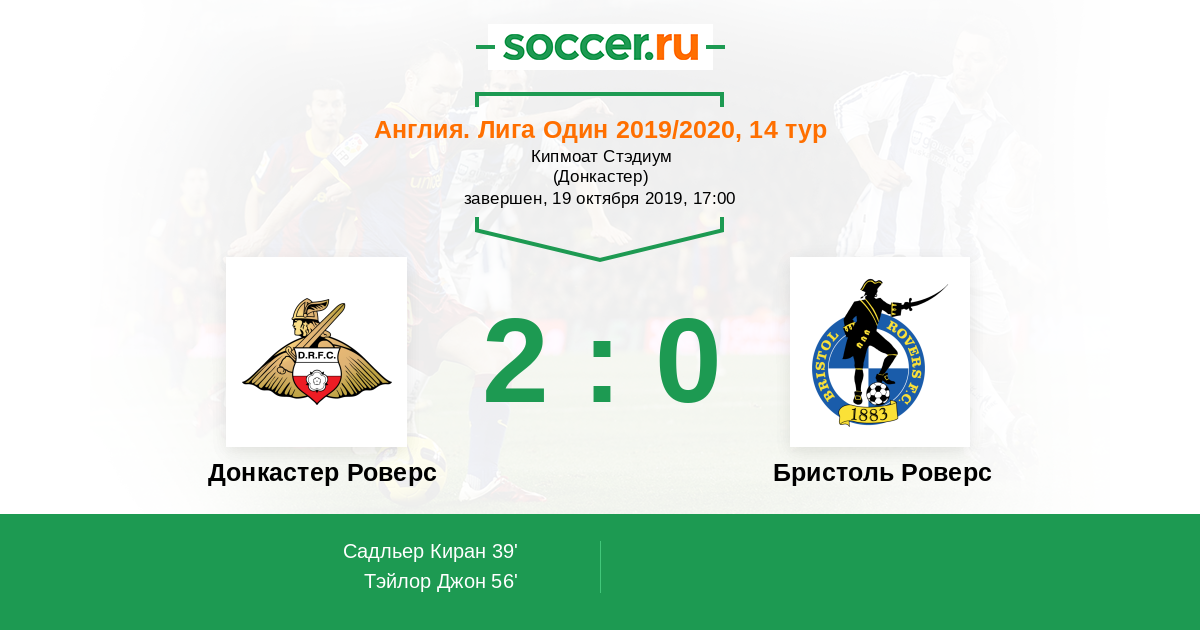 Протокол матча Донкастер Роверс против Бристоль Роверс