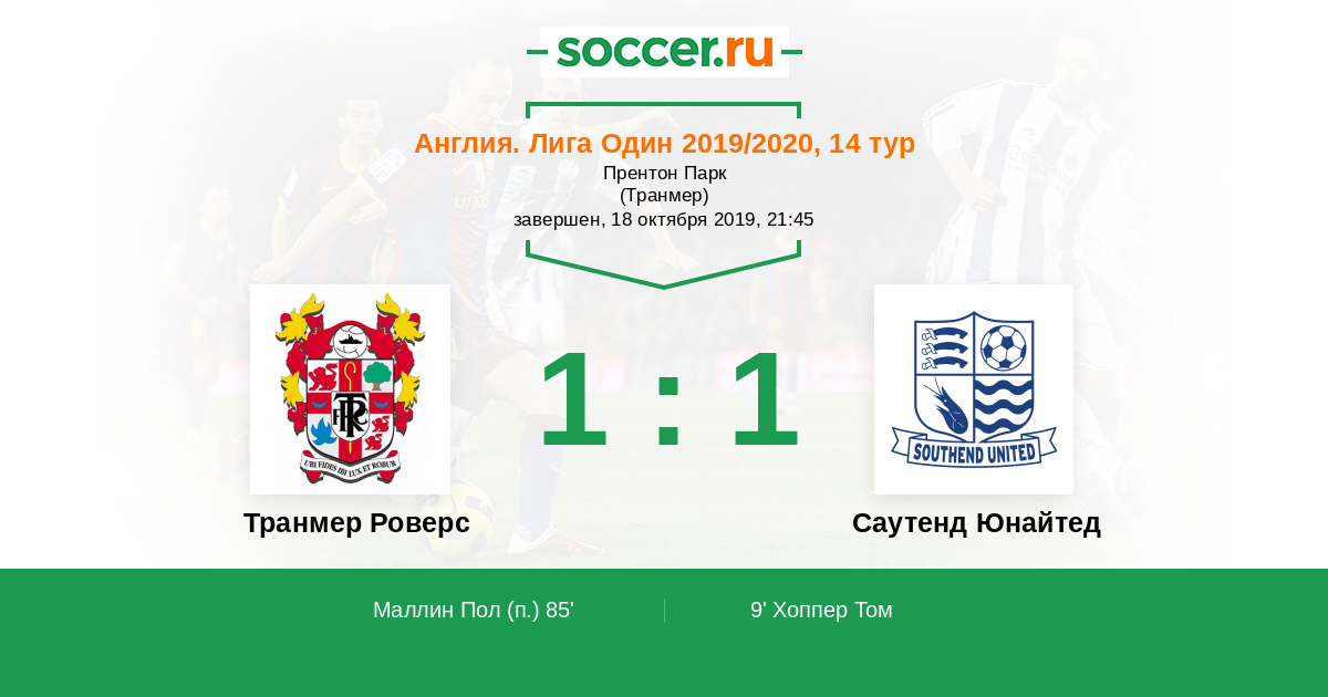 Протокол матча Транмер Роверс против Саутенд Юнайтед