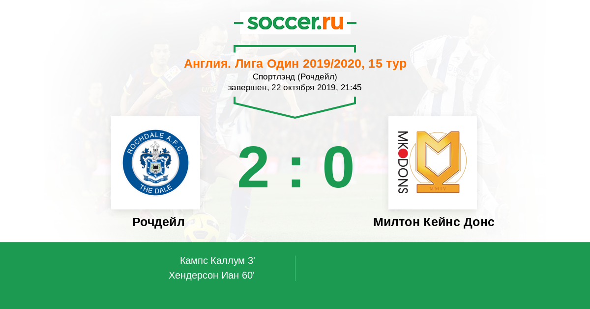 Протокол матча Рочдейл против Милтон Кейнс Донс