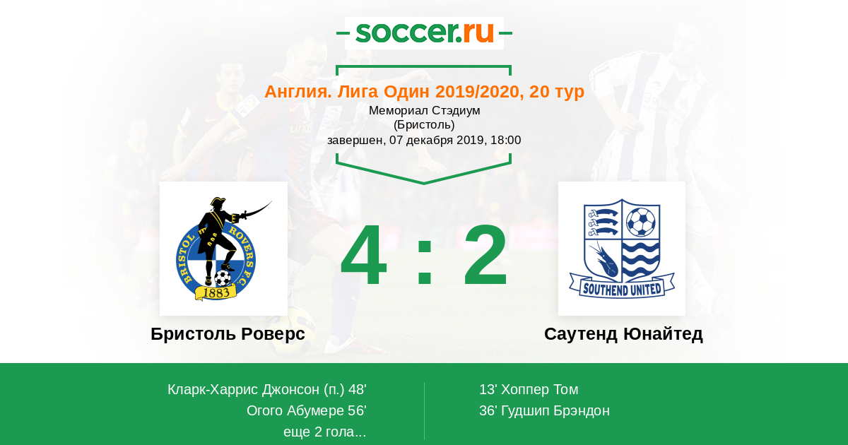 Протокол матча Бристоль Роверс против Саутенд Юнайтед