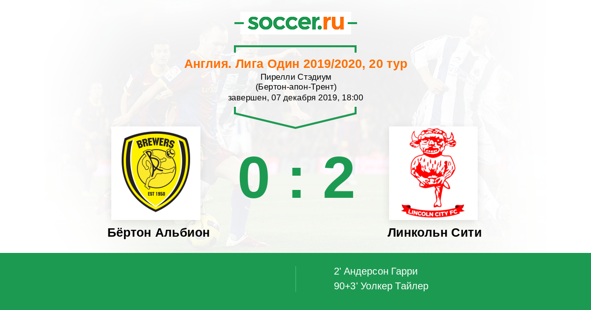 Протокол матча Бёртон Альбион против Линкольн Сити