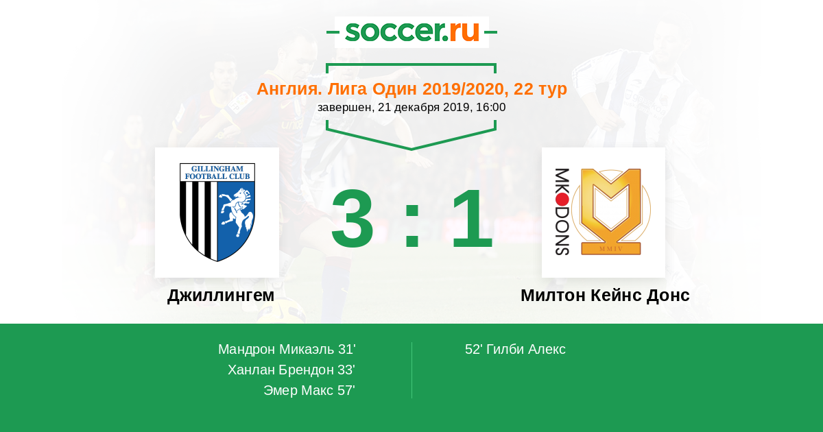 Протокол матча Джиллингем против Милтон Кейнс Донс