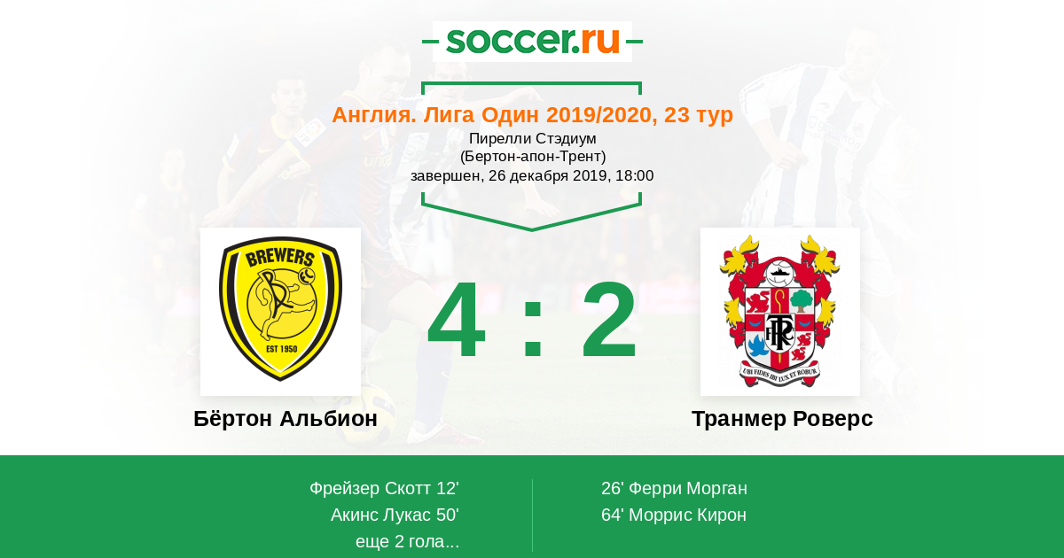 Протокол матча Бёртон Альбион против Транмер Роверс