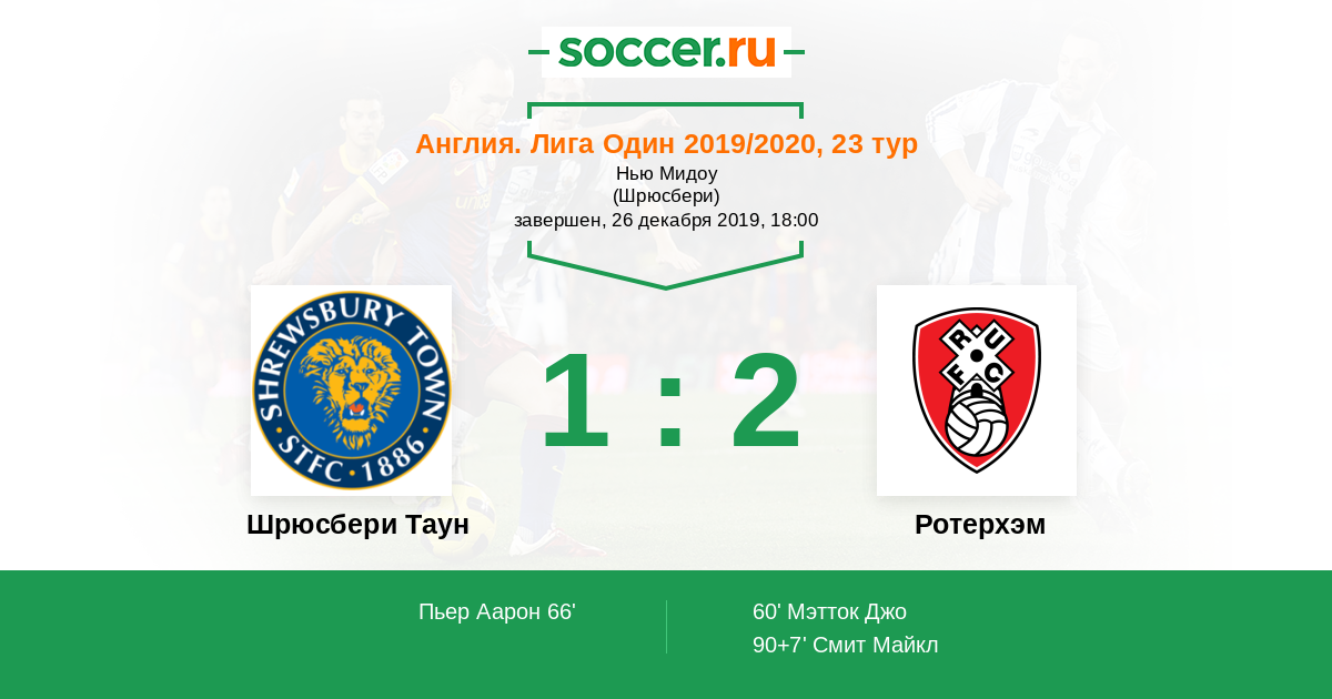 Протокол матча Шрюсбери Таун против Ротерхэм