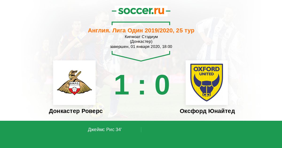 Протокол матча Донкастер Роверс против Оксфорд Юнайтед