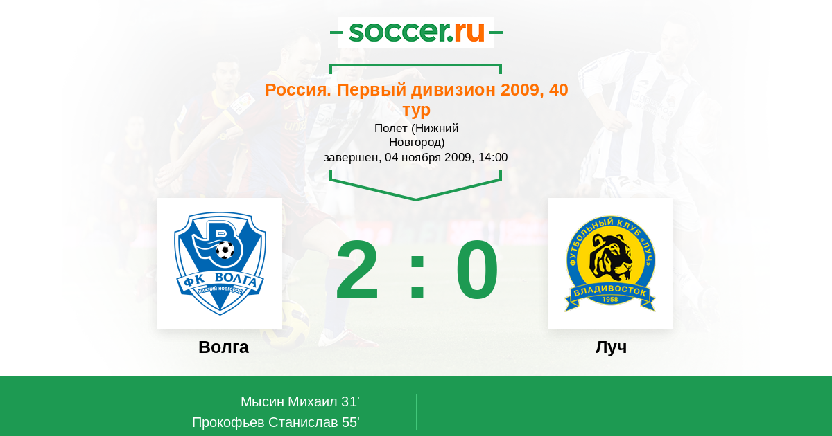 Протокол матча Волга против Луч