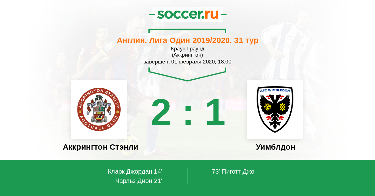 Протокол матча Аккрингтон Стэнли против Уимблдон