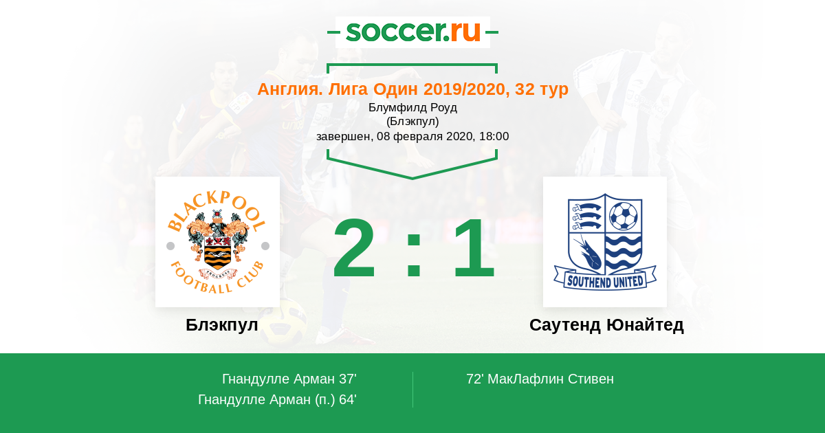 Протокол матча Блэкпул против Саутенд Юнайтед