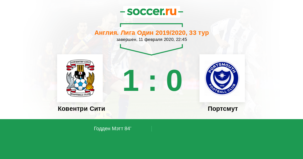 Протокол матча Ковентри Сити против Портсмут