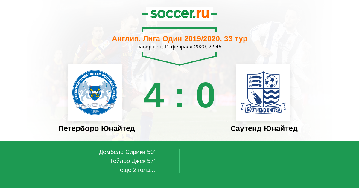Протокол матча Петерборо Юнайтед против Саутенд Юнайтед