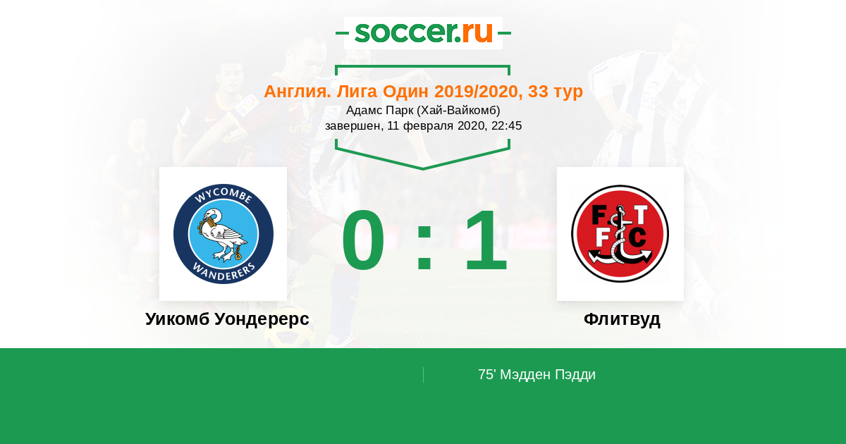 Протокол матча Уикомб Уондерерс против Флитвуд