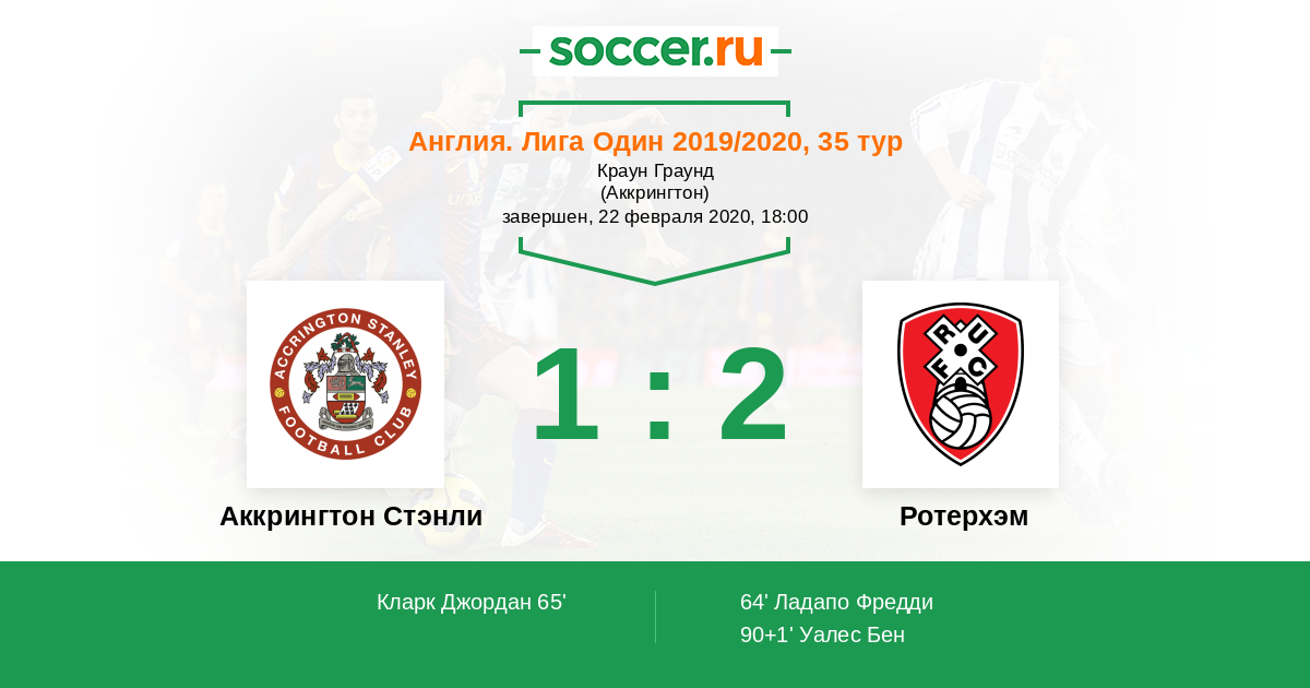 Протокол матча Аккрингтон Стэнли против Ротерхэм