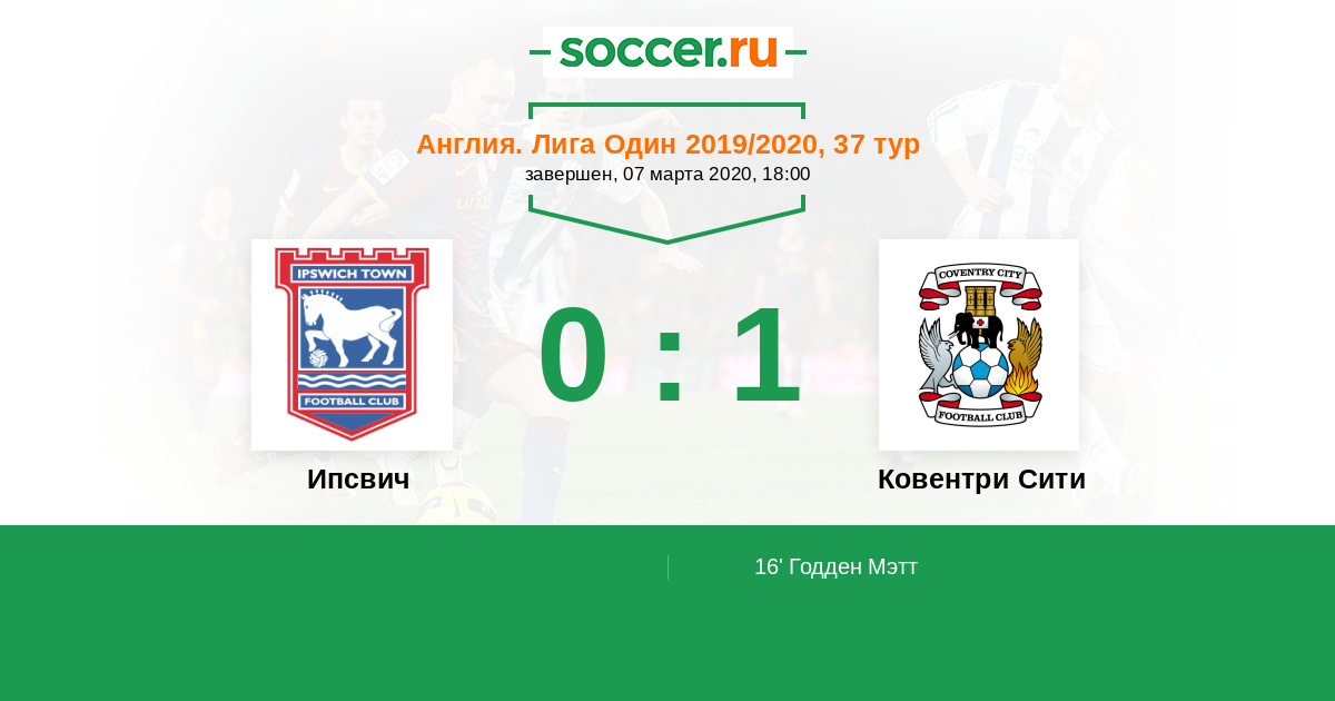 16' (0:1) Годден Мэтт (24) (Уолш Лиам (20))