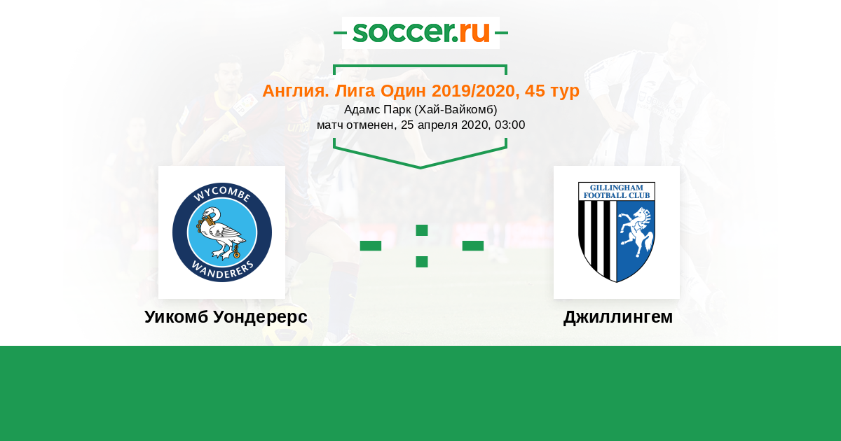 Англия. Первая Футбольная Лига 23.02.2019 Уикомб Уондерерс Логотип футбольный клуб Уикомб Уондерерс (Хай-Вайкомб) 0:1 Логотип футбольный клуб Джиллингем Джиллингем