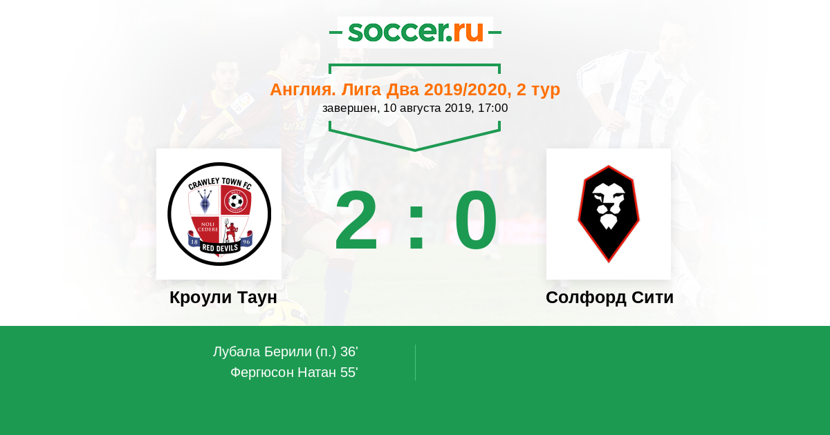Протокол матча Кроули Таун против Солфорд Сити