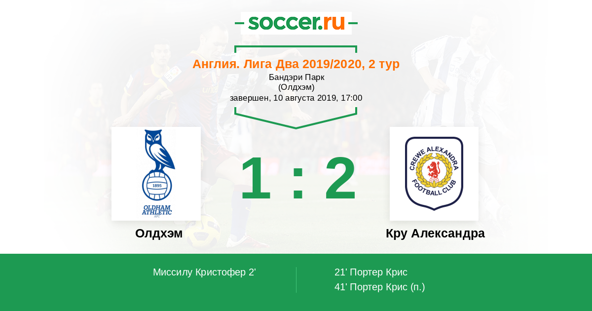 Протокол матча Олдхэм против Кру Александра