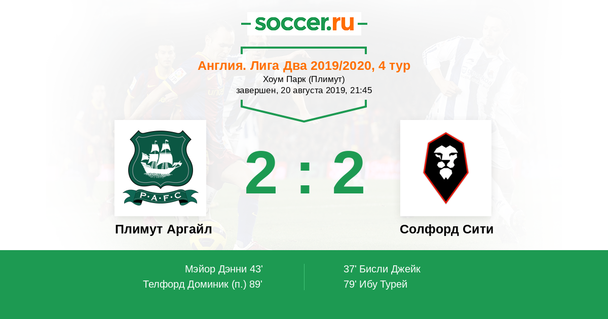 Протокол матча Плимут Аргайл против Солфорд Сити