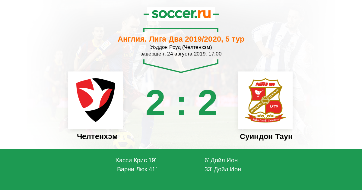 Протокол матча Челтенхэм против Суиндон Таун