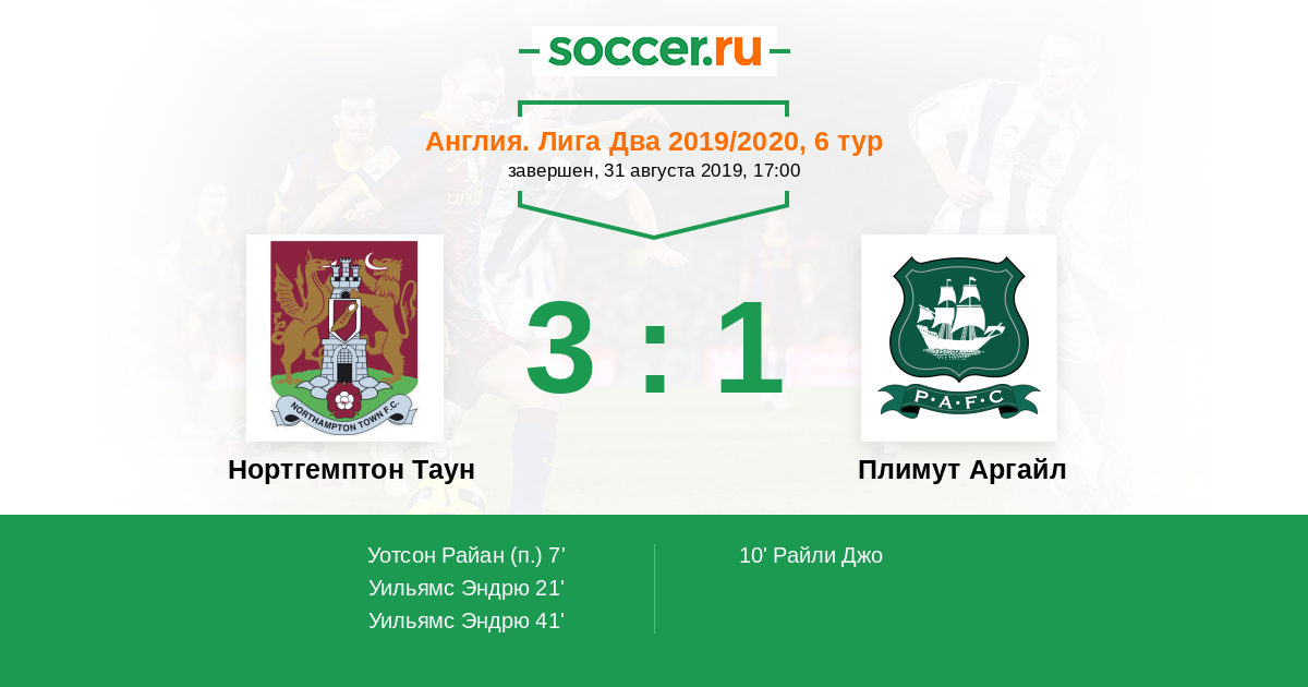 Протокол матча Нортгемптон Таун против Плимут Аргайл