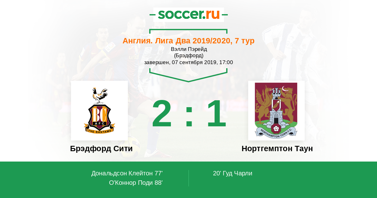 Протокол матча Брэдфорд Сити против Нортгемптон Таун