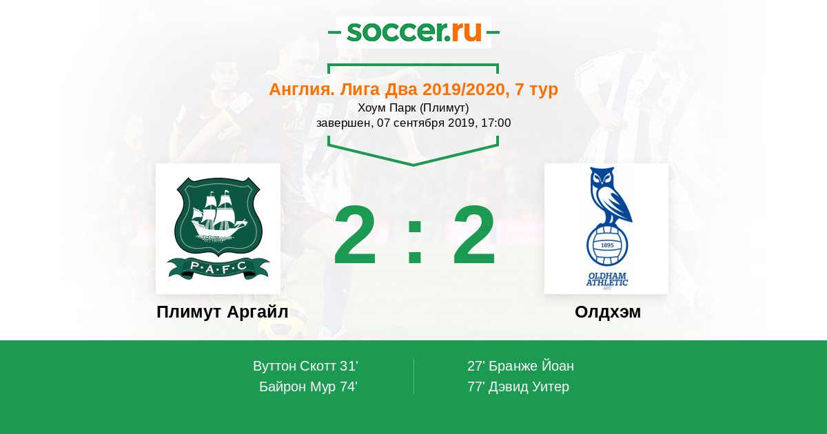 Протокол матча Плимут Аргайл против Олдхэм