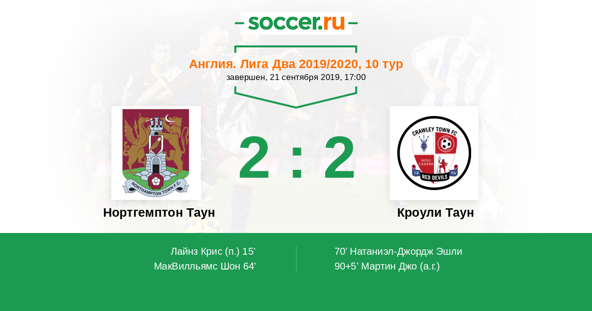Протокол матча Нортгемптон Таун против Кроули Таун
