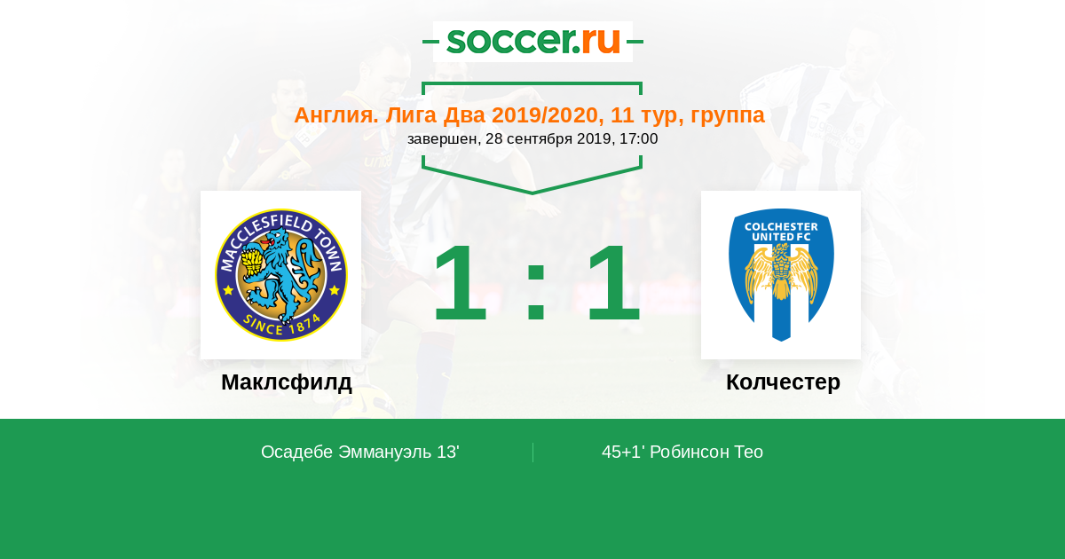 Протокол матча Маклсфилд против Колчестер