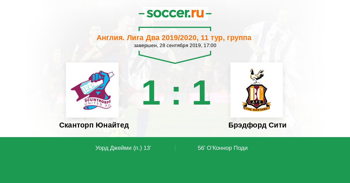 Протокол матча Сканторп Юнайтед против Брэдфорд Сити