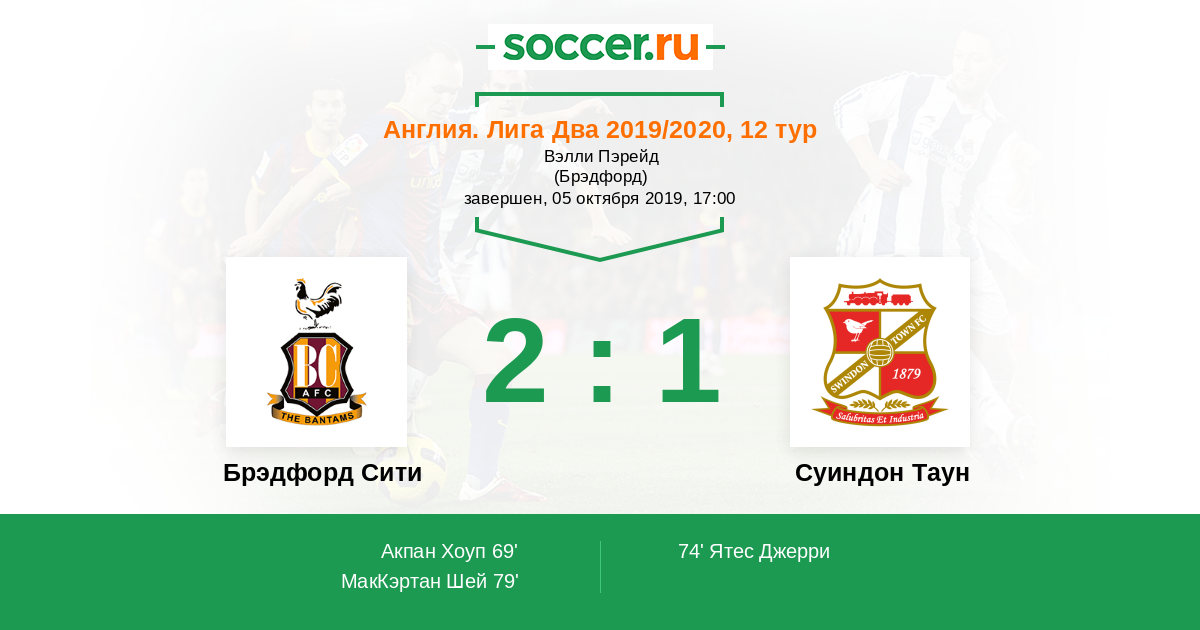 Протокол матча Брэдфорд Сити против Суиндон Таун