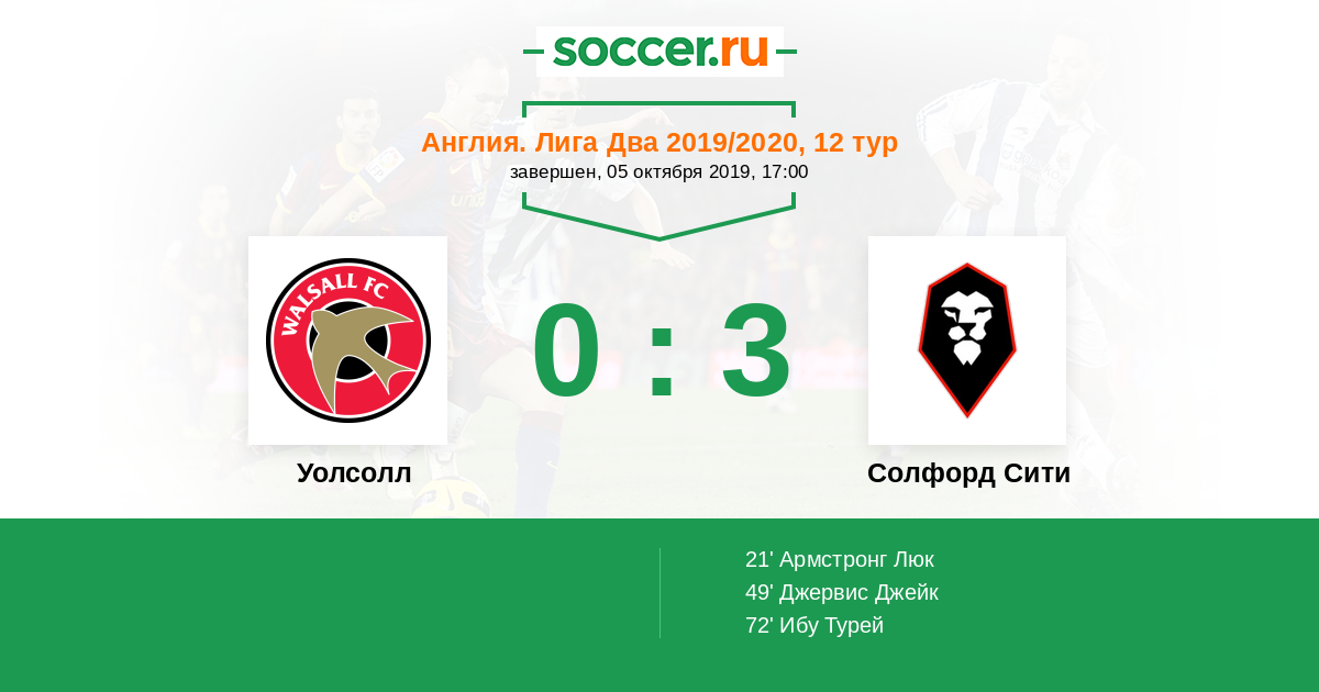 Протокол матча Уолсолл против Солфорд Сити