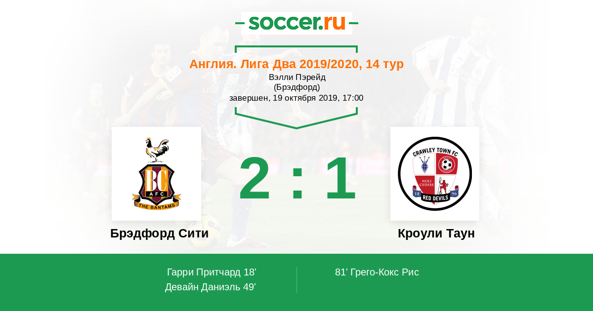 Протокол матча Брэдфорд Сити против Кроули Таун