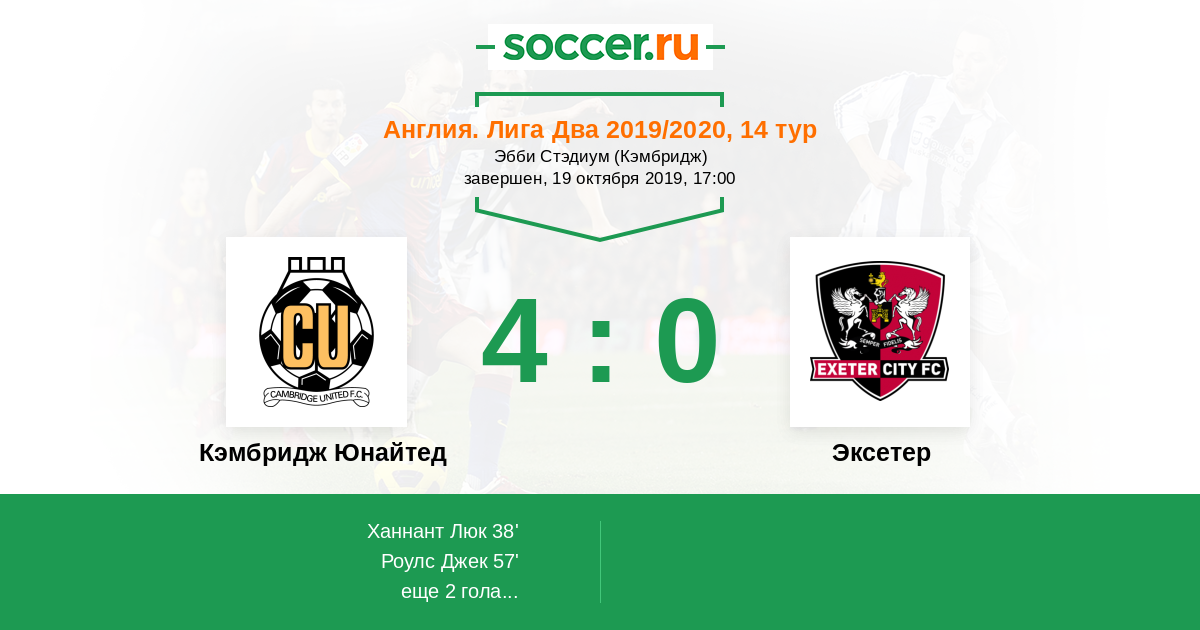 Протокол матча Кэмбридж Юнайтед против Эксетер