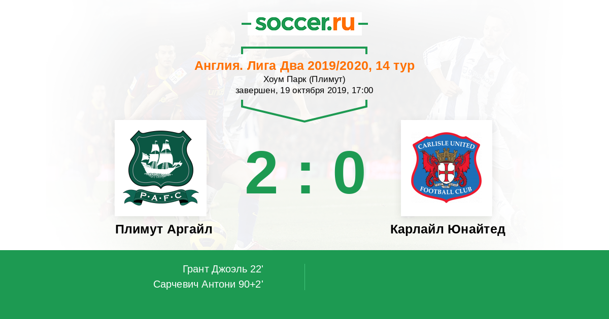 Протокол матча Плимут Аргайл против Карлайл Юнайтед