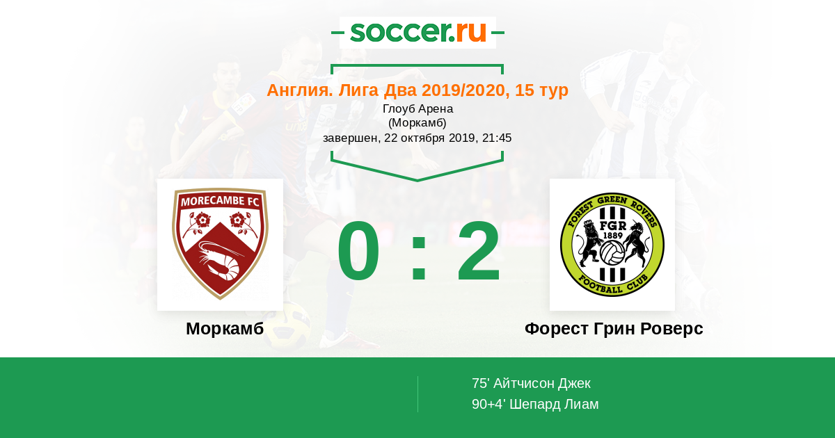 Протокол матча Моркамб против Форест Грин Роверс