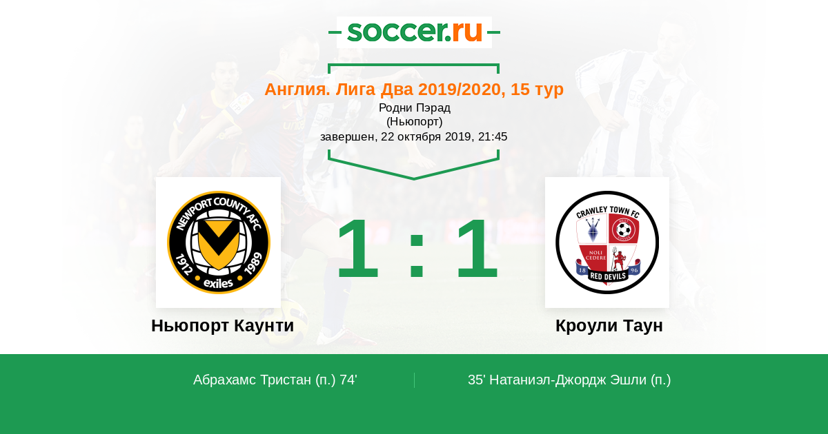 Протокол матча Ньюпорт Каунти против Кроули Таун
