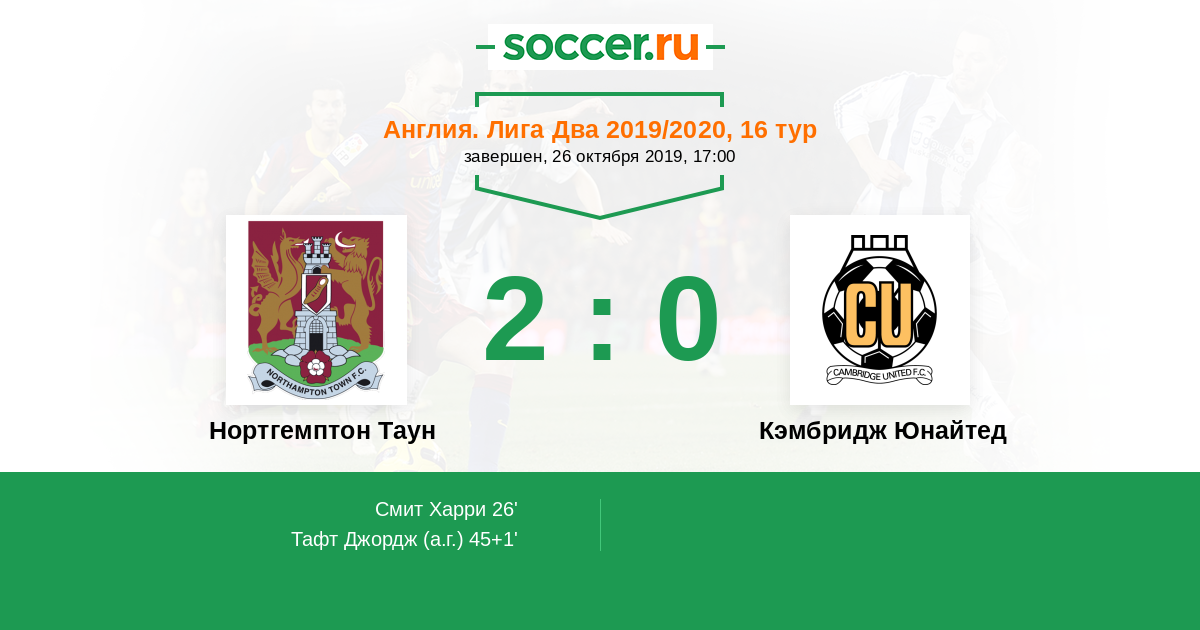Протокол матча Нортгемптон Таун против Кэмбридж Юнайтед