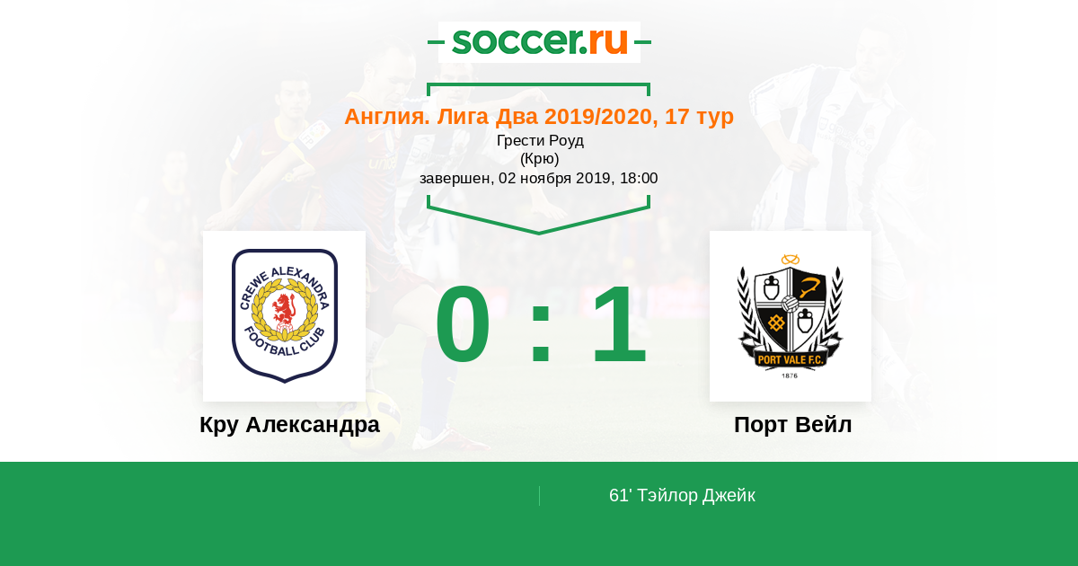 Протокол матча Кру Александра против Порт Вейл