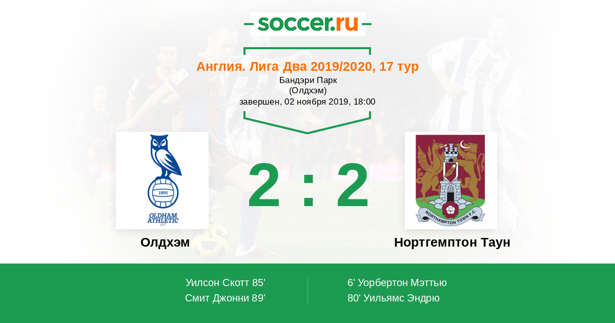 Протокол матча Олдхэм против Нортгемптон Таун