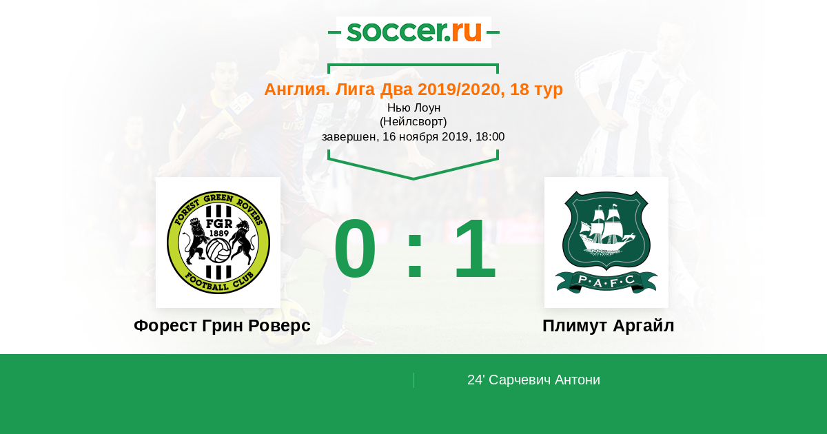 Протокол матча Форест Грин Роверс против Плимут Аргайл