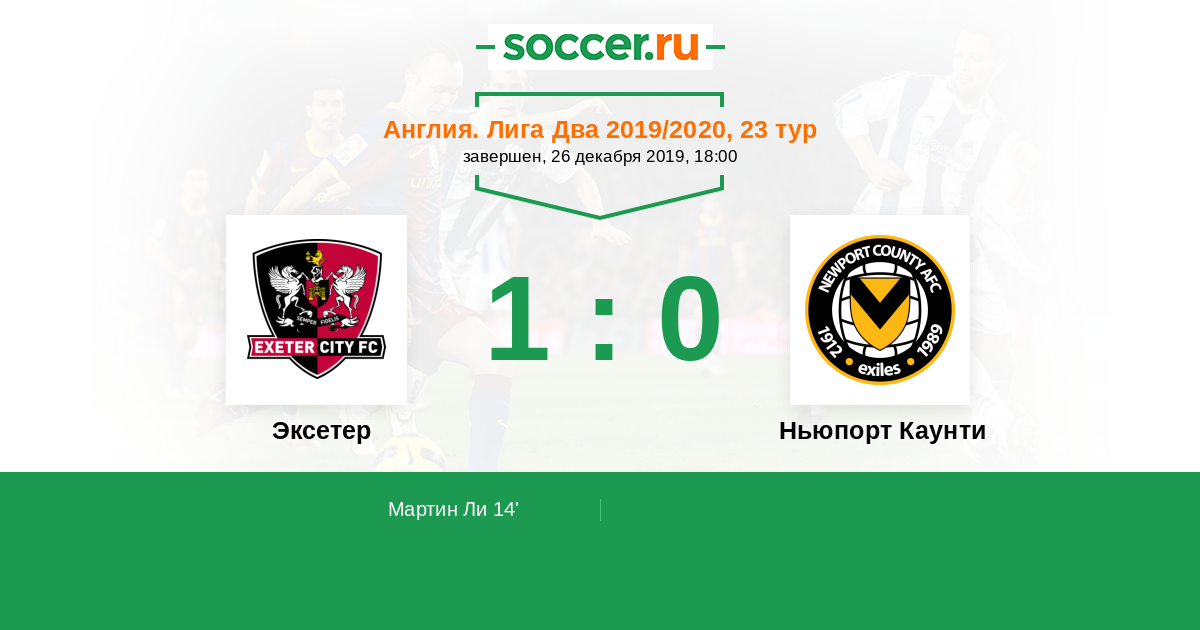 Протокол матча Эксетер против Ньюпорт Каунти