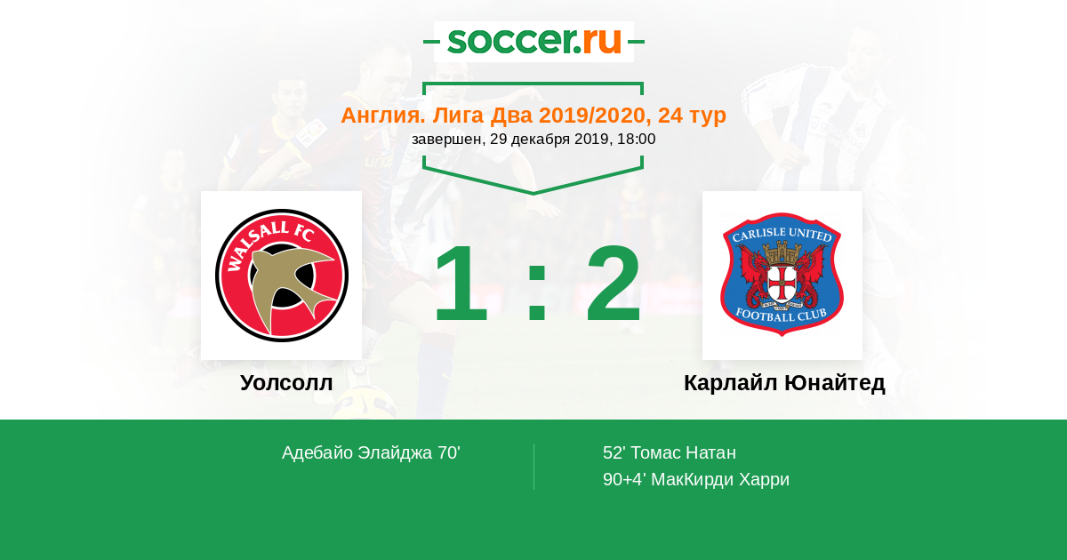 Протокол матча Уолсолл против Карлайл Юнайтед