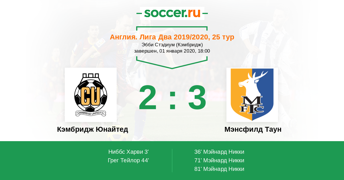 Протокол матча Кэмбридж Юнайтед против Мэнсфилд Таун