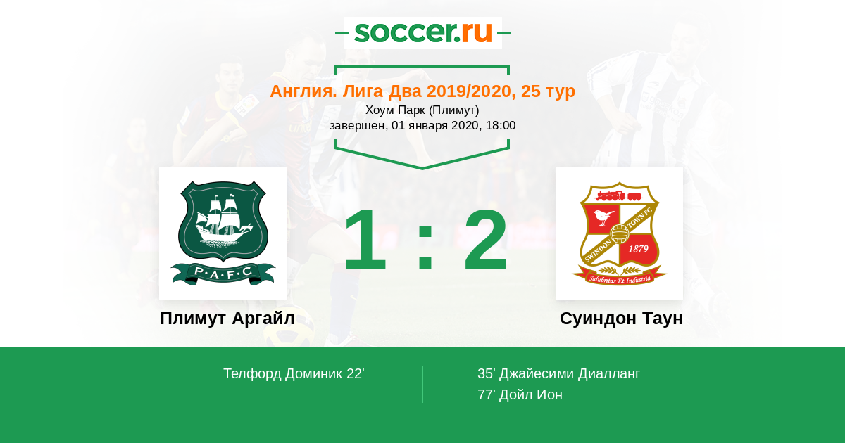 Протокол матча Плимут Аргайл против Суиндон Таун